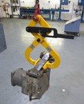 The Multi-Positional Lift Trolley is a device designed for supporting and maneuvering air receivers during their removal and installation on the underside of trains. The system consists of an adjustable cradle which holds the air receiver, combined with a hydraulic rotating jib mounted on a trolley system. The elevation range of the lift is 774 mm.